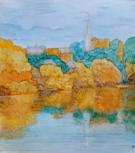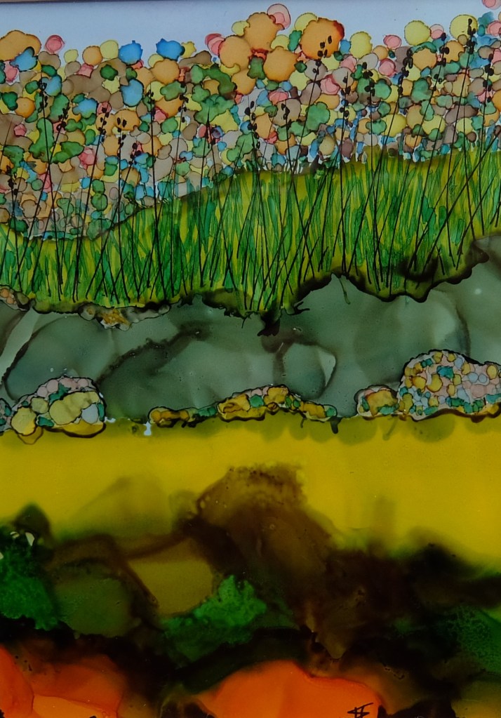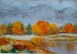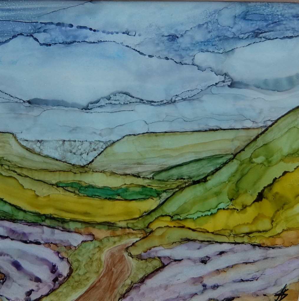 (100) Maybe Hill 28x28cm approx Alcohol Ink £175