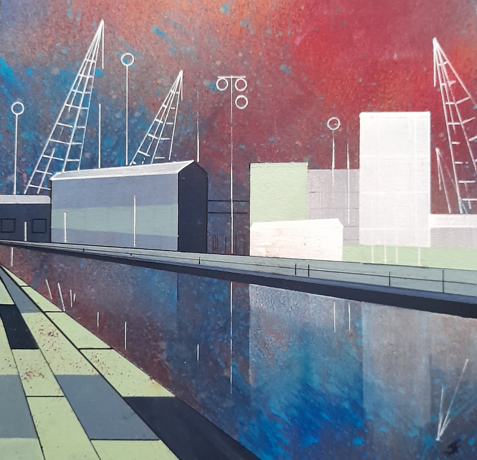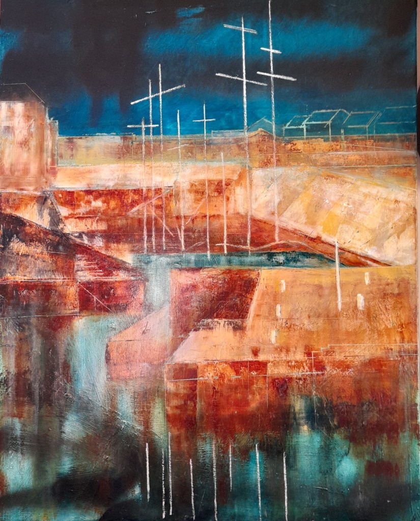 (104) Port of Sharpness 90x60cm approx Mixed Media on Board