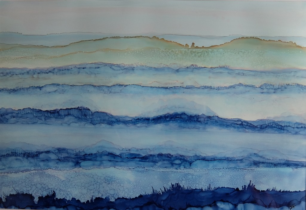 Its a new presentation on an old but constant theme and scene from my garden. The first image is the real time photograph and below is my Alcohol Ink representation of the image.